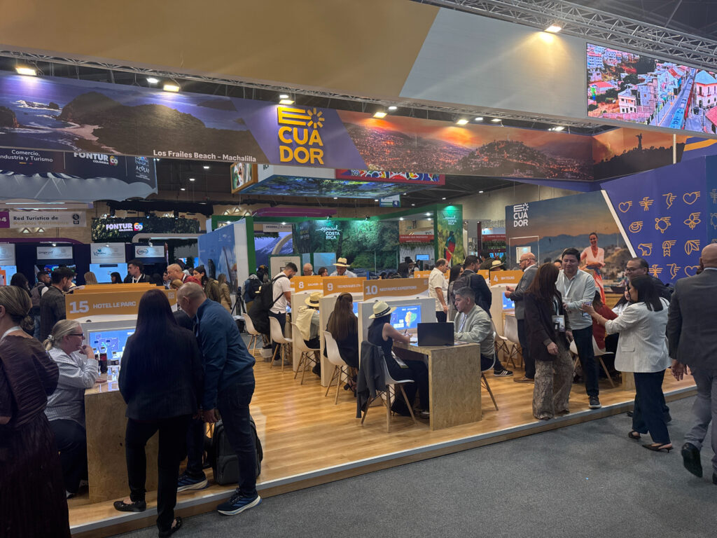 Durante los tres días de feria, el stand ecuatoriano se consolidó como un espacio dinámico de promoción y negociación, donde se desarrollaron alrededor de 720 reuniones de trabajo, generando nuevas oportunidades comerciales y alianzas estratégicas para el fortalecimiento del turismo receptivo hacia el Ecuador. En este contexto, se mantuvieron encuentros institucionales de alto nivel con gremios, asociaciones y representantes del sector, con el objetivo de consolidar acuerdos de cooperación y reforzar el posicionamiento del Destino Ecuador en el mercado latinoamericano.