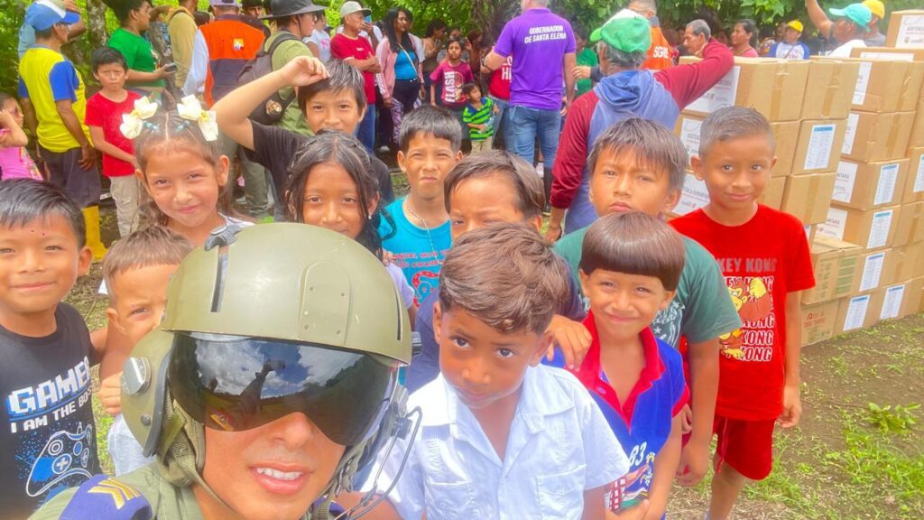 Santa Elena | Fuerzas Armadas del Ecuador a través de la Fuerza Aérea y en coordinación con la Secretaría Nacional de Gestión de Riesgos llevaron ayuda humanitaria hacia la parroquia Simón Bolívar, comuna La Frutilla afectada por las inundaciones, derrumbes y deslizamientos de tierra a causa de lluvias de alta intensidad que han limitado el acceso por vía terrestre.