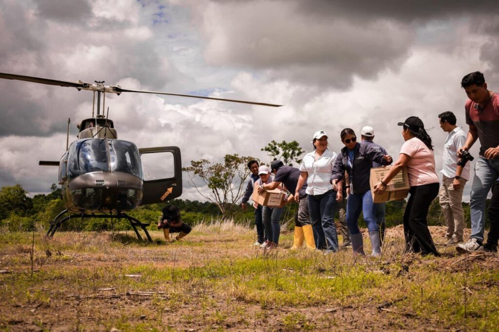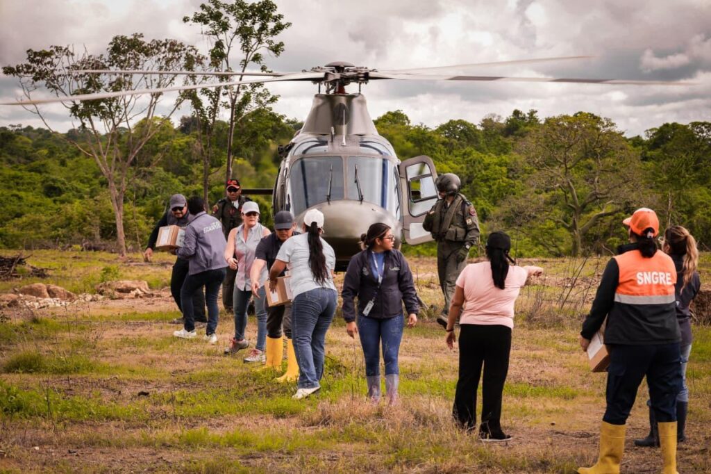 Durante la misión de transporte aéreo de ayuda humanitaria se movilizaron 580 kilos de raciones alimentarias y 100 kilos de vestimentas que fueron entregados a los pobladores del sector.
