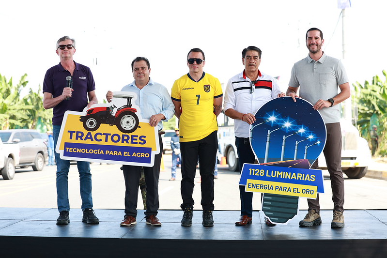 Durante este acto, el Primer Mandatario también entregó tractores, 106 títulos de propiedad de predios rurales y cerca de 1.500 paquetes tecnológicos para que produzcan más, con menos riesgo y con mayor estabilidad. “Así es como garantizamos empleo, alimentos y progreso para ustedes y todo el país, porque somos aliados de los productores”, dijo Noboa.
