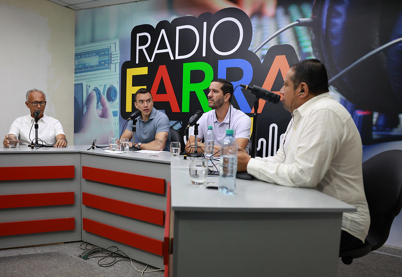 Como parte de su agenda en territorio en la provincia de Manabí, este jueves 9 de abril, el presidente Daniel Noboa Azin y el ministro de Infraestructura y Transporte, Roberto Luque, brindaron una entrevista a Radio Farra. En un diálogo con los periodistas Robert Intriago y Clemente Vásquez, las autoridades expusieron las acciones del Gobierno Nacional en la provincia, especialmente en infraestructura, para asegurar la calidad de vida de los ciudadanos.