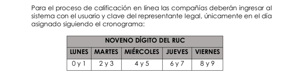 Para el proceso de calificación en línea las compañías deberán ingresar al