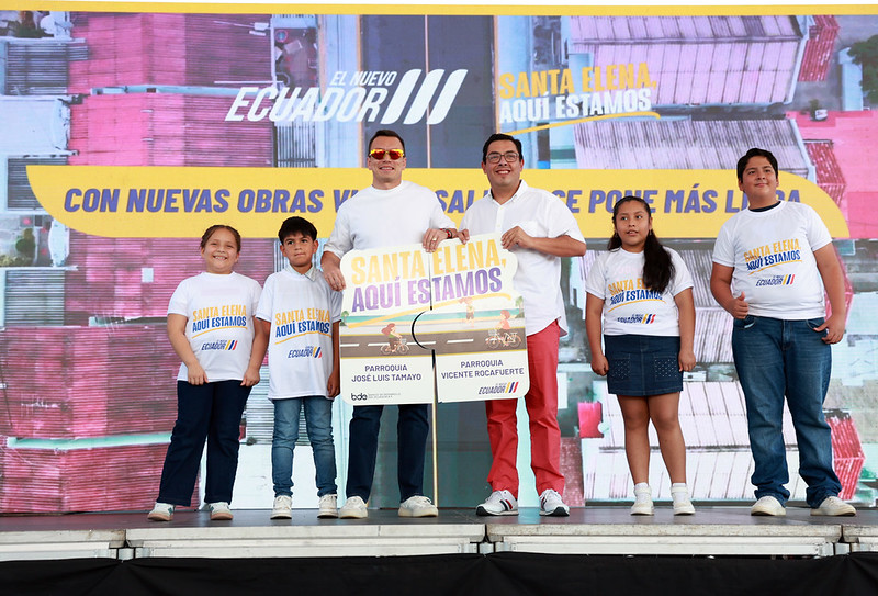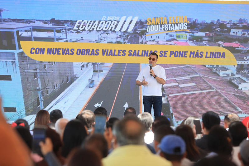 Entre otras acciones, el presidente Noboa señaló la entrega de más de 9.000 becas para jóvenes, el otorgamiento de cerca de USD 10 millones en créditos para emprendedores y la ejecución del Paso Lateral Salinas, inaugurado hace más de un año con una inversión de USD 16,7 millones.